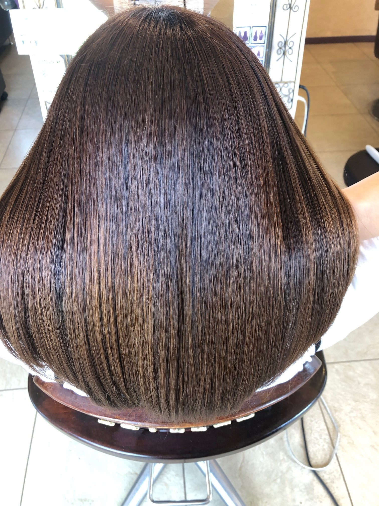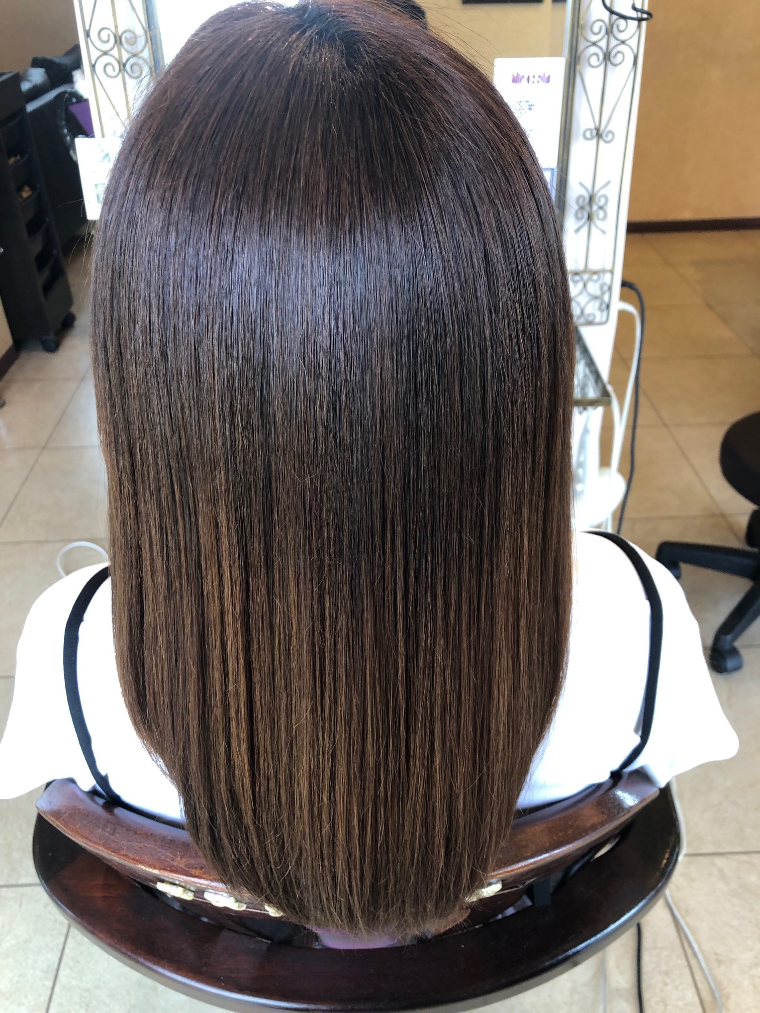 縮毛強制とミネコラ のコースで施述させて頂きました。