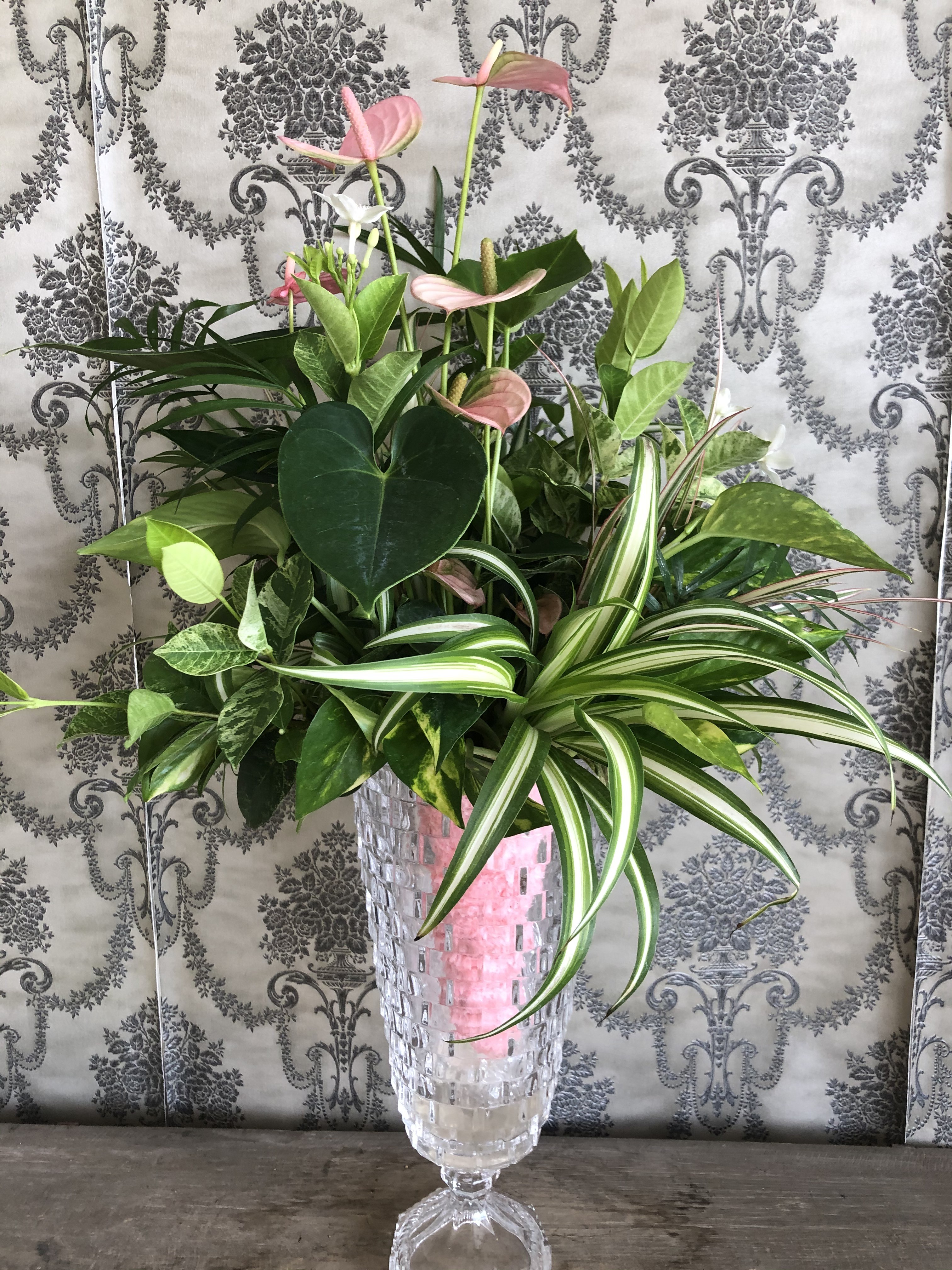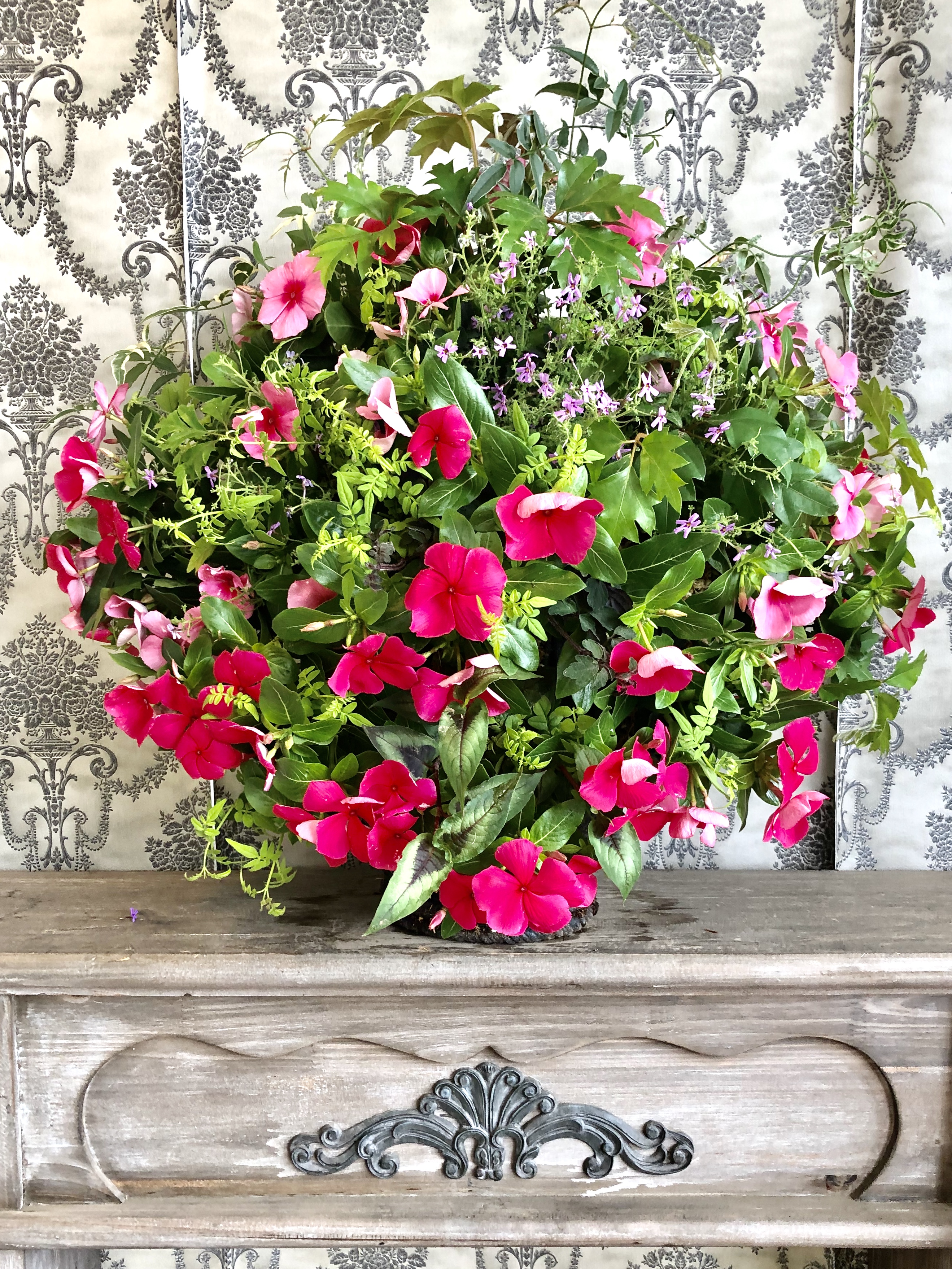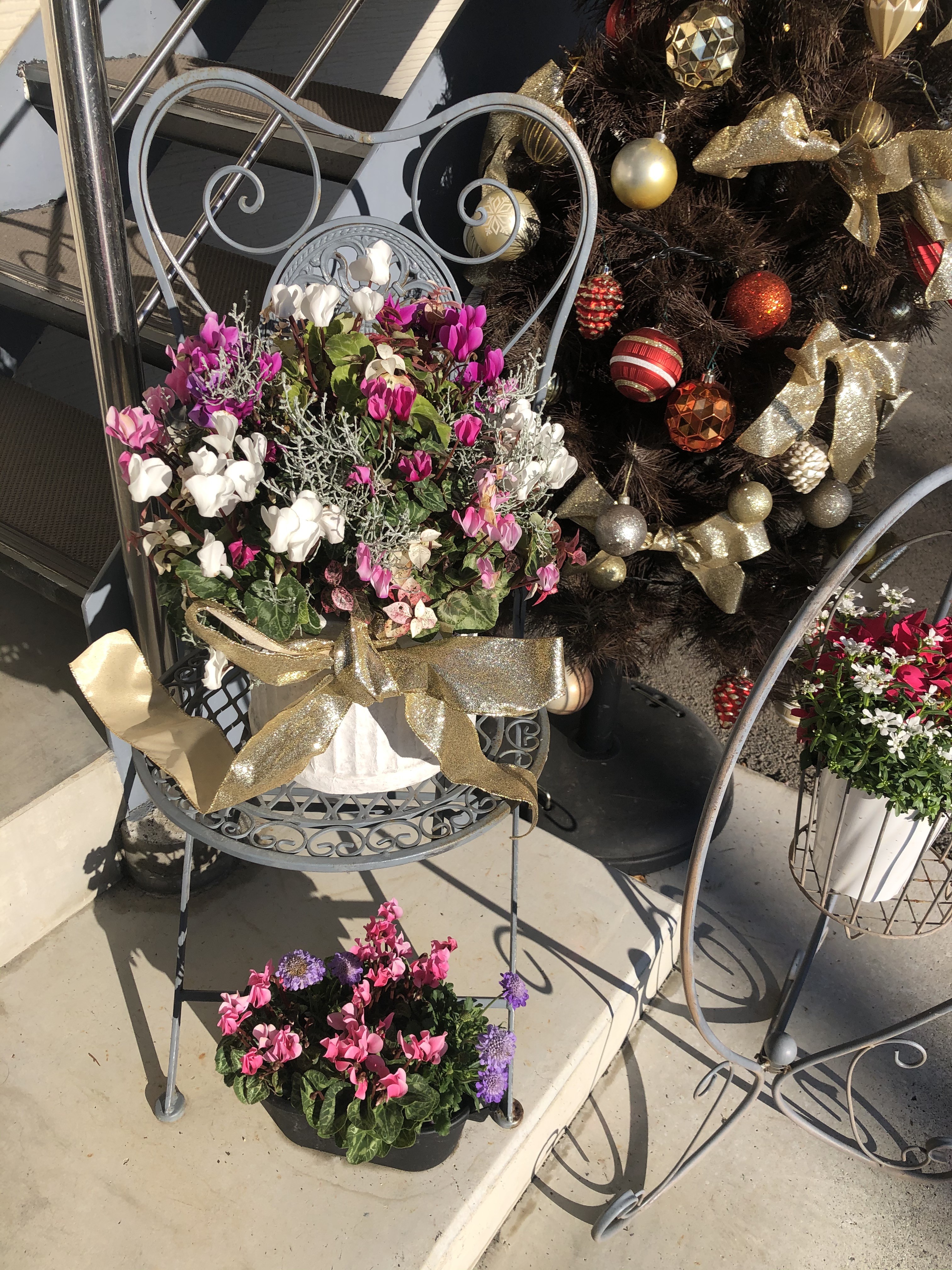 店外を華やかに演出しているふみこさんの作品!