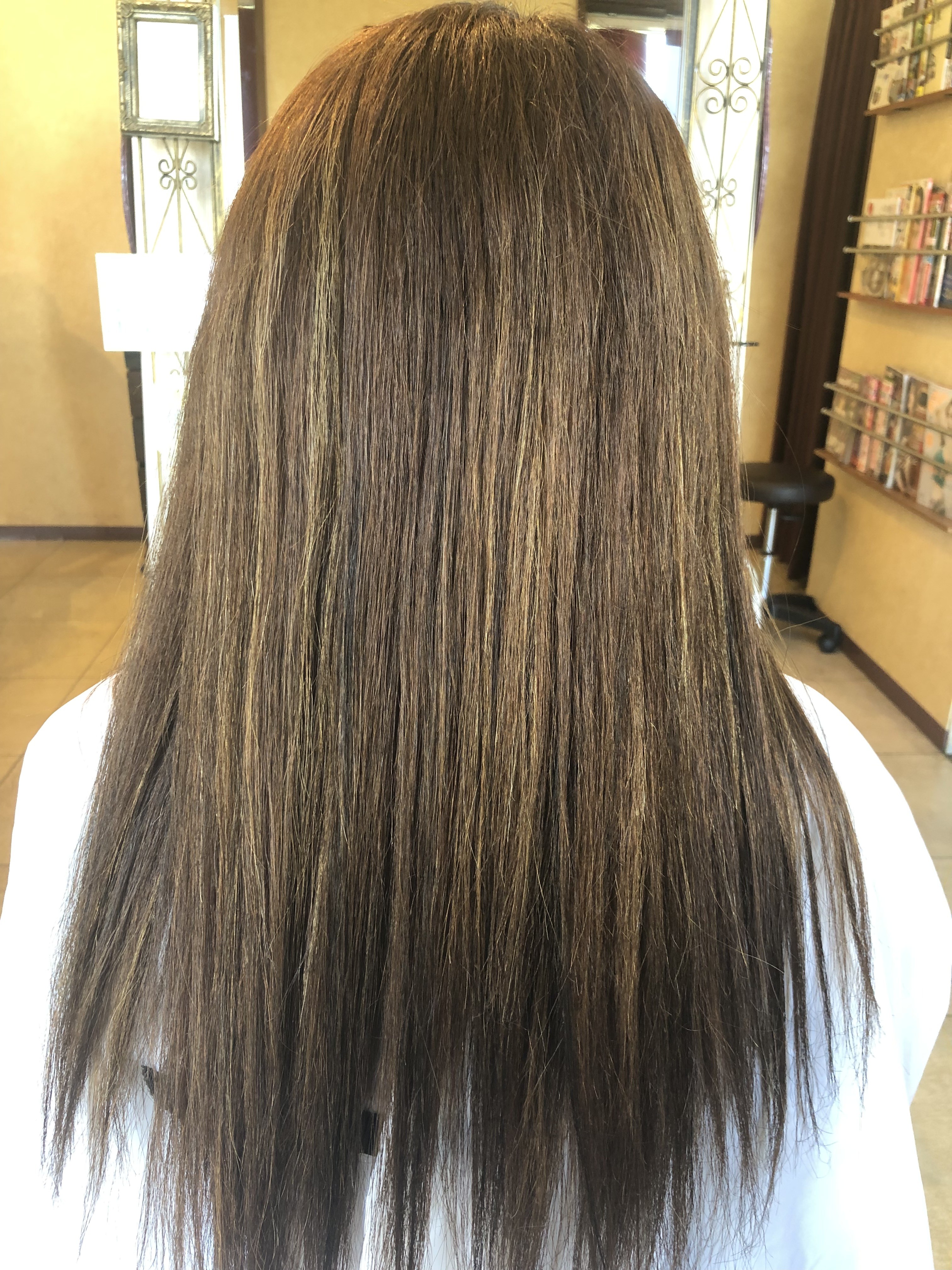 新規のお客様。長い髪の毛の質感、ツヤ共に甦りとても綺麗です。