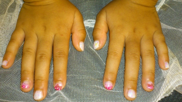 子供の小さい手にされているネイルア-トはとても可愛いです。お出かけの