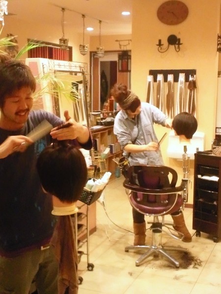 ブリエでは、只今、平野君と片岡さんがカットの練習中です。彼らは