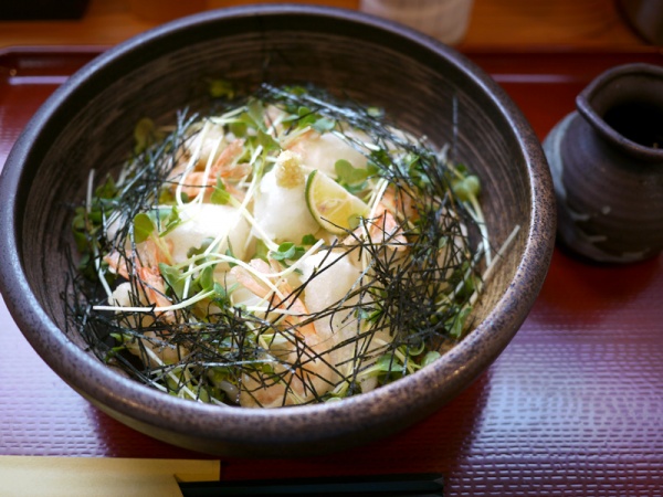 いつもながらに店員さんに一押しを聞いたら「海老もちぶっかけ」が一番人気と