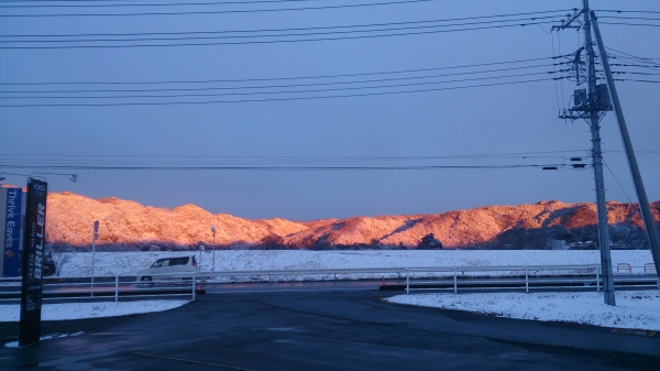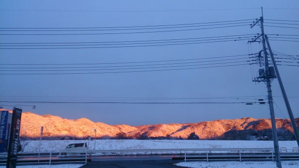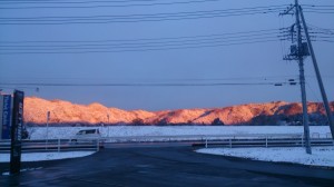 一瞬だったのですが、残雪の中家の目の前の山だけが、真っ赤になっていて!!