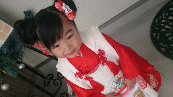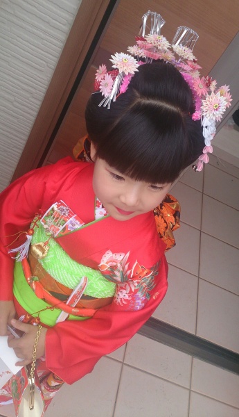 ニコッと笑顔(^-^)/3歳なのに斜め前髪とってもよくお似合いです!