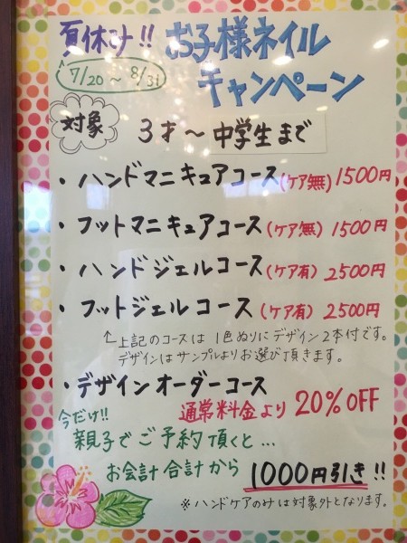 夏の思い出の一つにいかがでしょうか?お子様とお母さんお2人でご予約頂くとさらに1000円OFF致しますので、