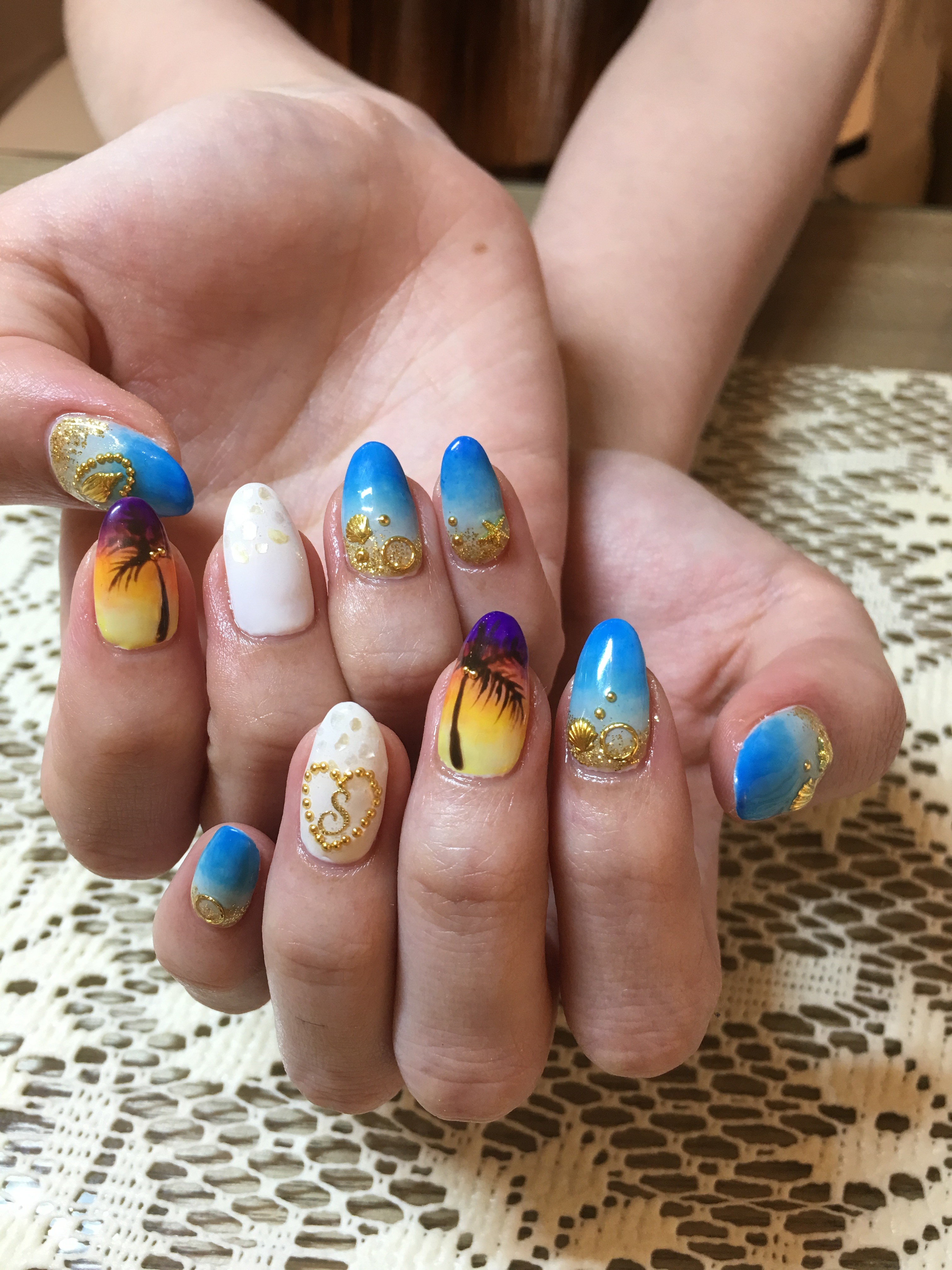 ビーチ、そしてサンセットをイメージしたデザインです(^^)とても涼しげで、夏らしいですね♡