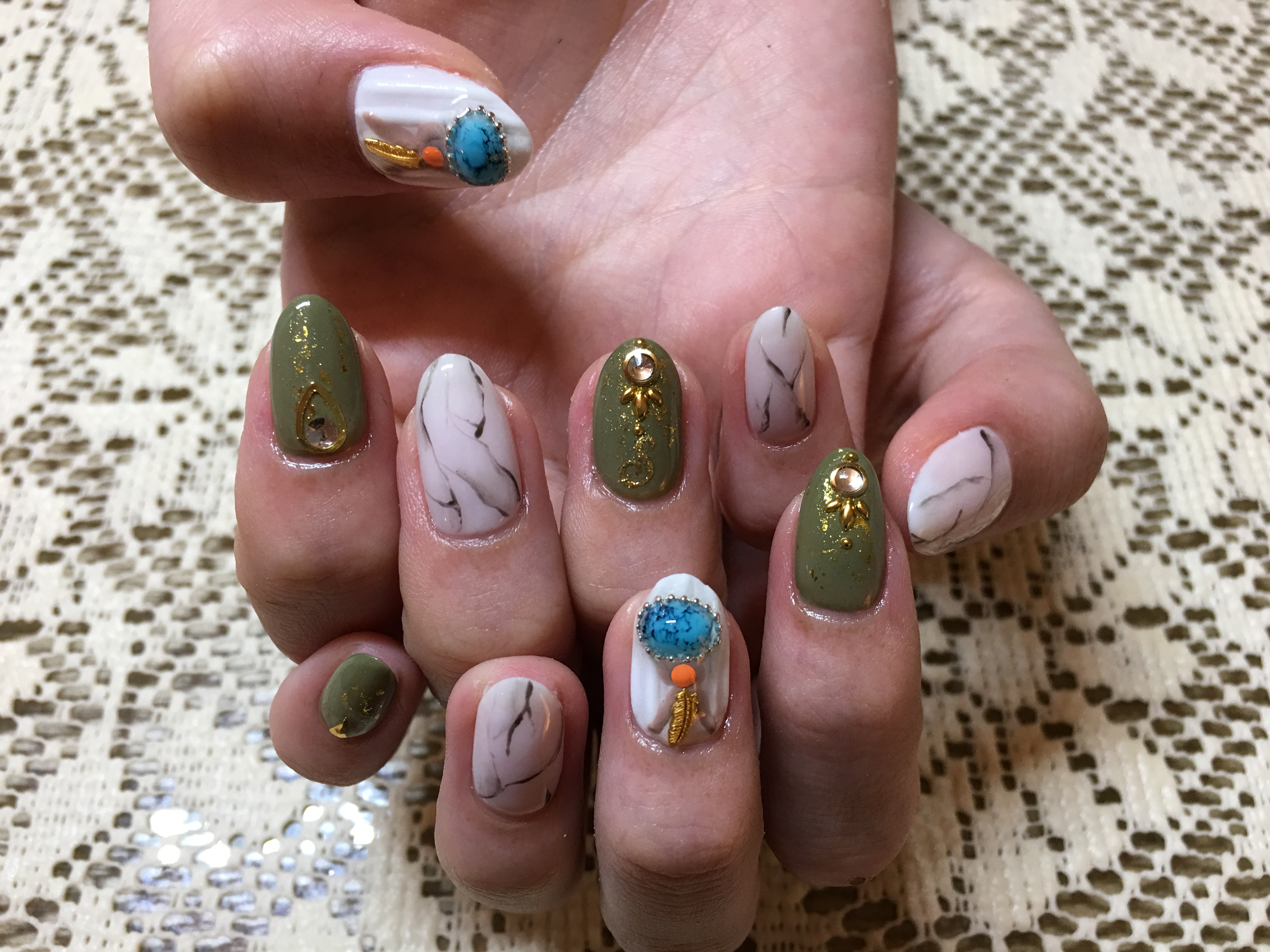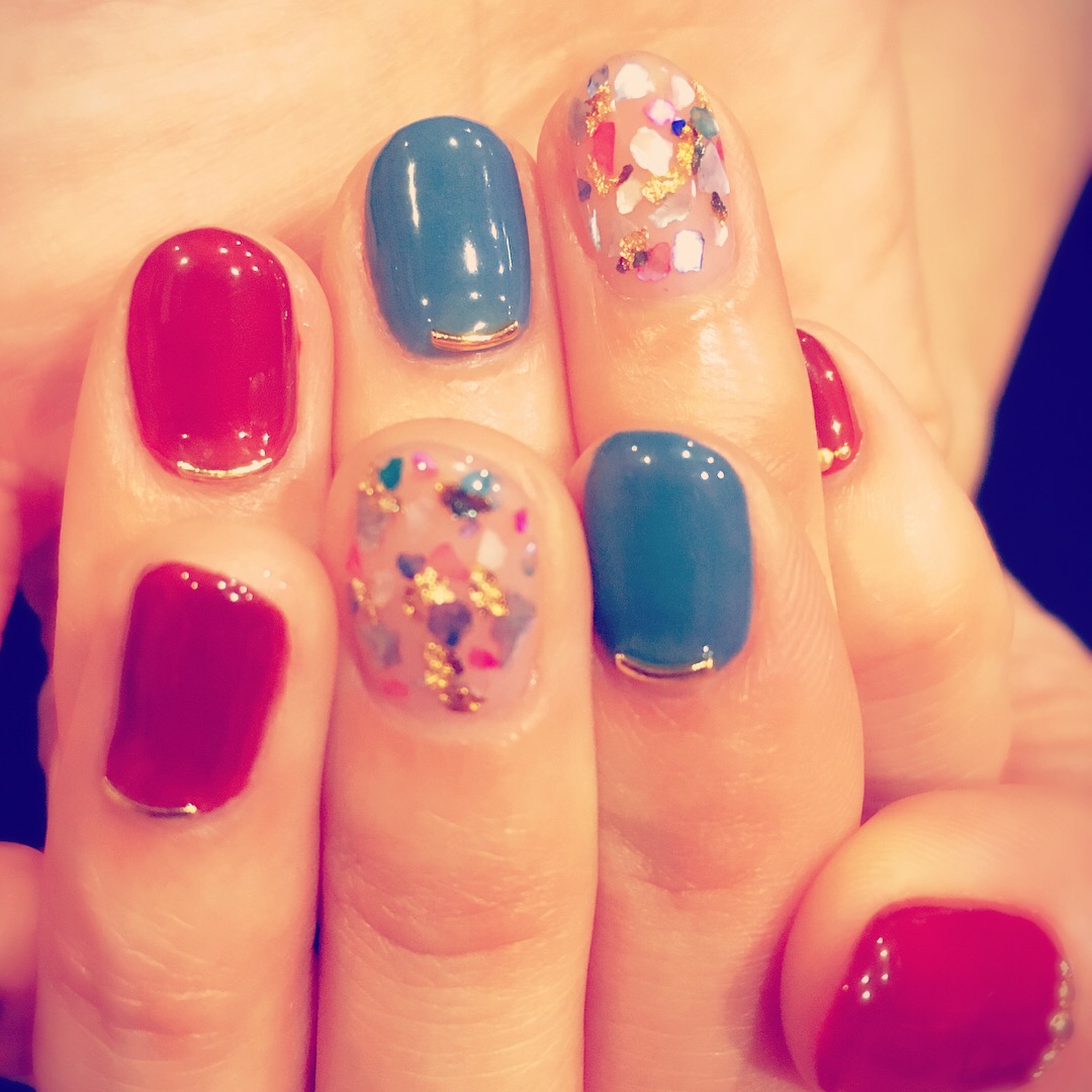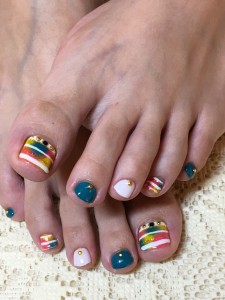 私のネイルは、早くも残暑ネイルです.*・゚