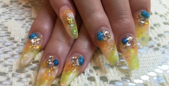 | (爪のケア後カラージェルでグラデーションをします。) |